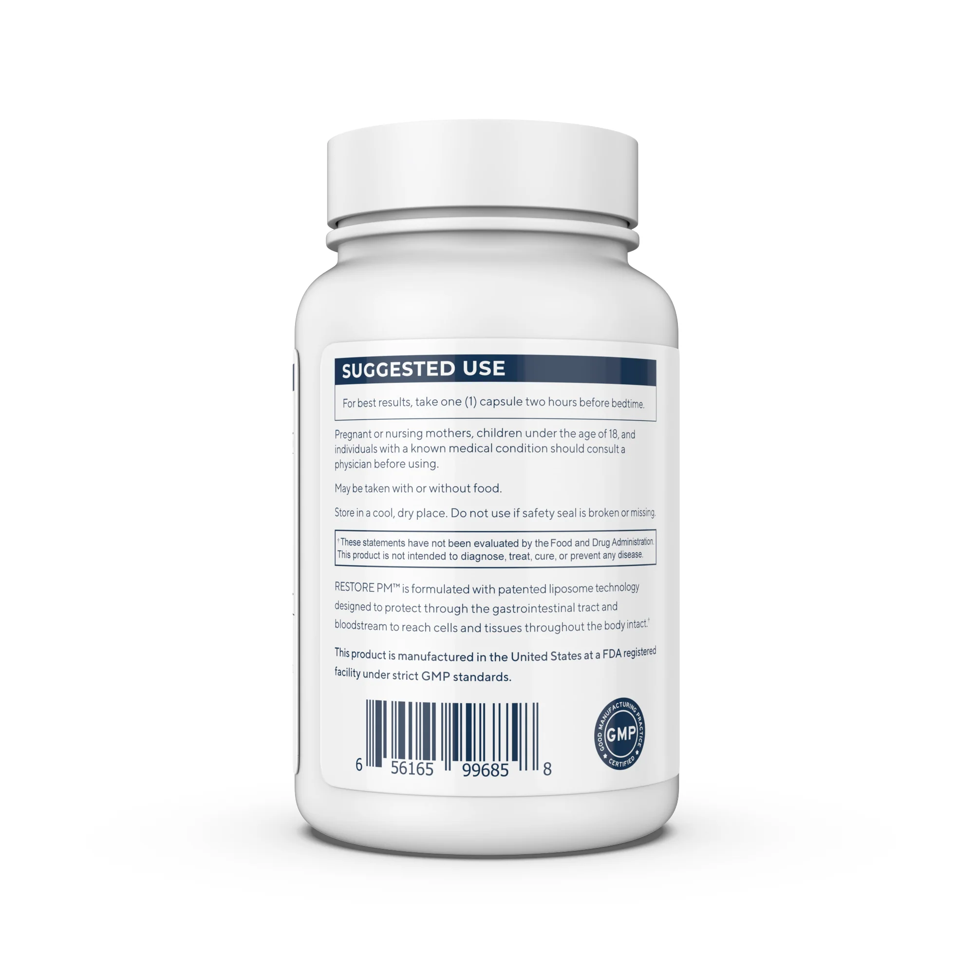 Restore PM™ Sleep capsules provide a concentrated blend of ingredients tailored to promote optimal sleep and restorative rest.†